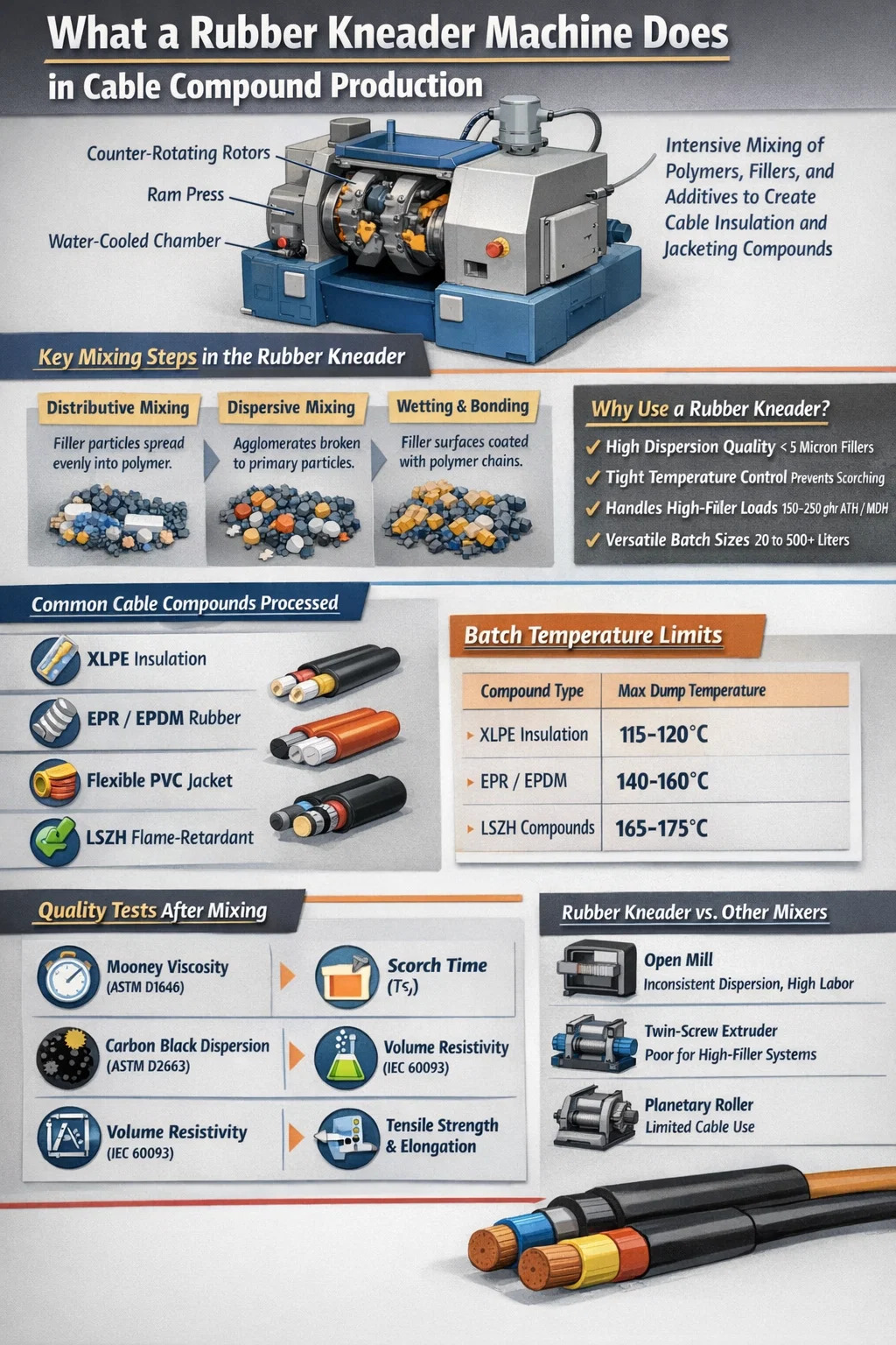 Comparación de la amasadora de caucho con tecnologías de mezcla alternativas para compuestos de cables