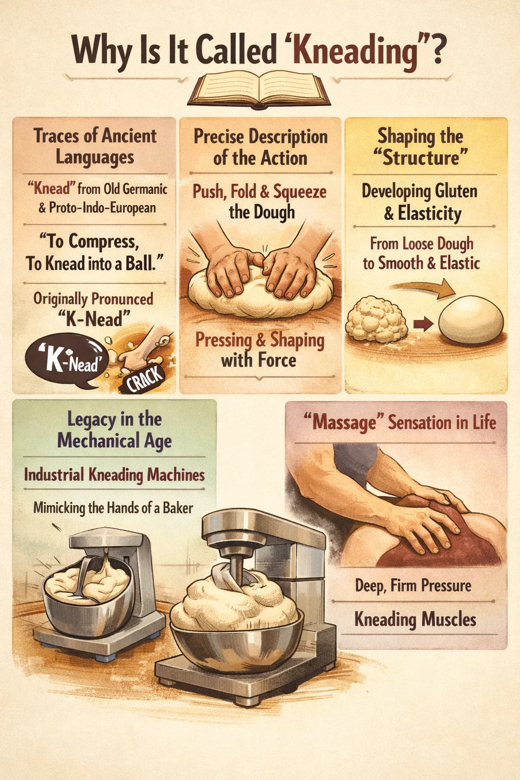 En cuanto a por qué este movimiento de "frotar y presionar" se llama amasar, hay una historia de evolución lingüística y una descripción muy vívida de la acción detrás de él. La palabra ha persistido hasta el día de hoy porque capta con precisión la esencia de este tipo de operación.